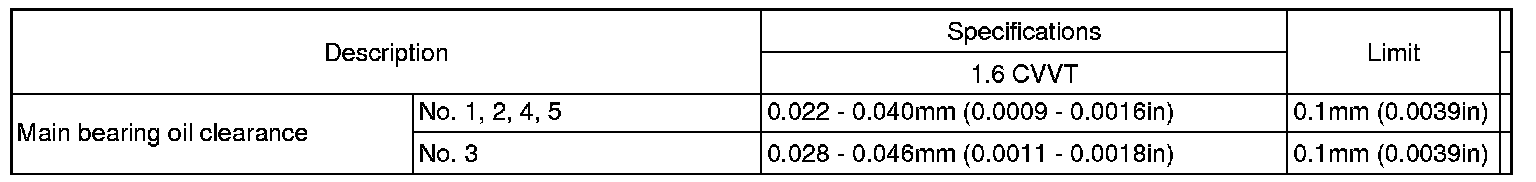 Crankshaft Main Bearing: Specifications