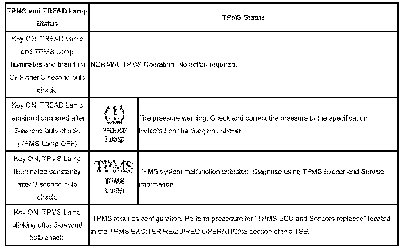 TPMS EXCITER REQUIRED OPERATIONS:Refer to the table above for TPMS Exciter operations that are required based upon the type of repair performed.