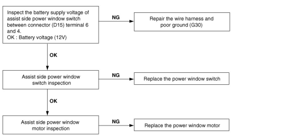 Assist side window does not operate.