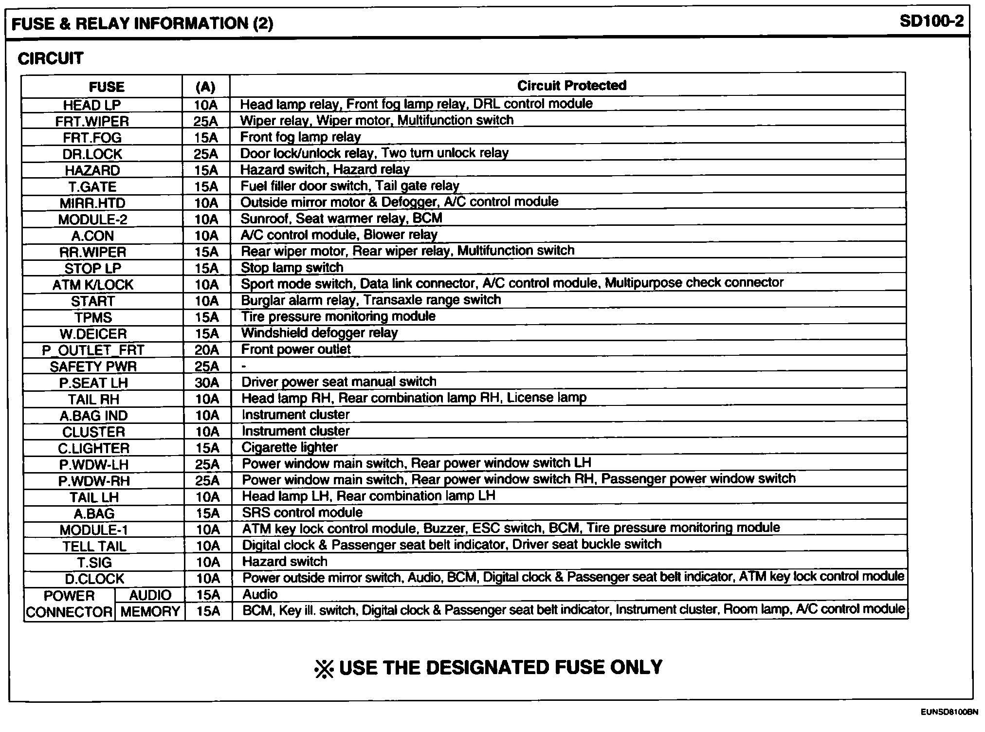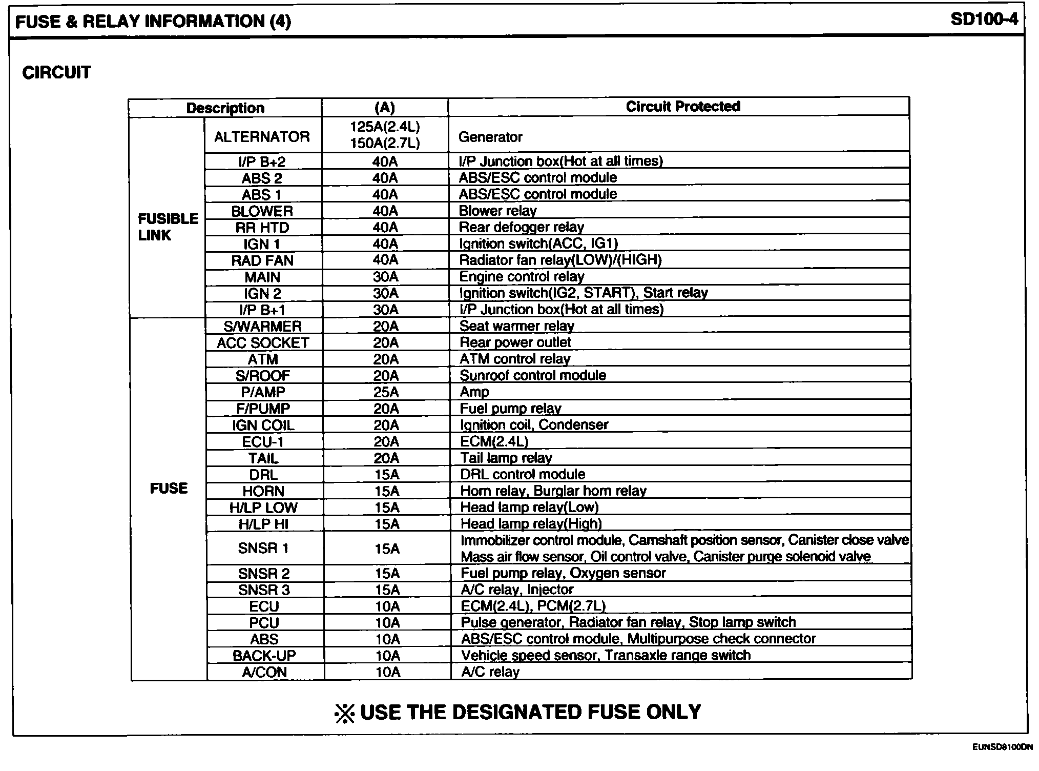 E/R Junction Box Circuit Details: