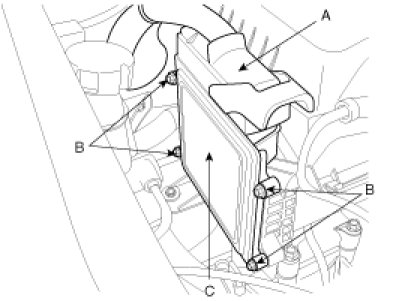 4. Unscrew the ECM mounting bolts (B) and remove the ECM from the air cleaner assembly.