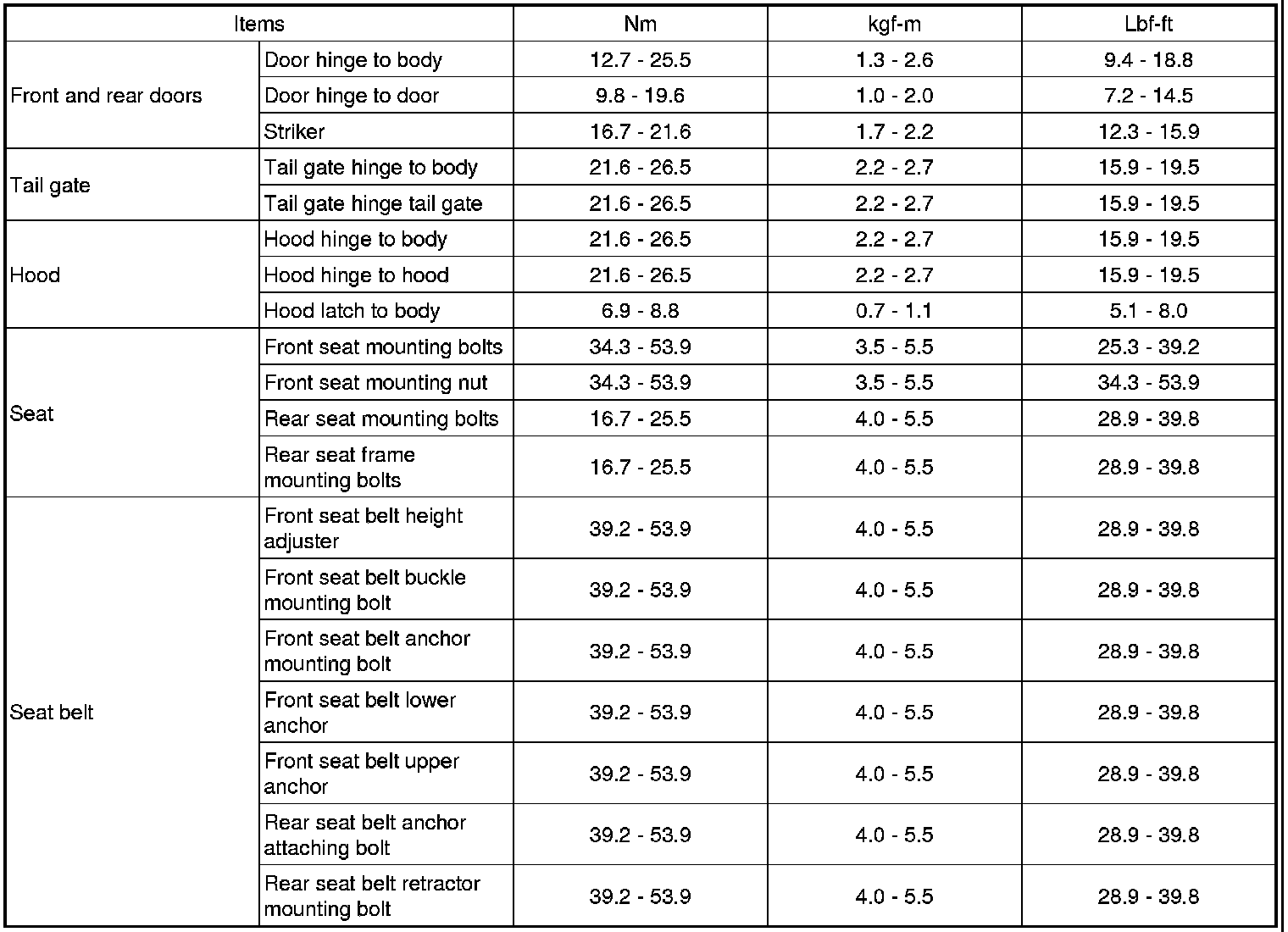TIGHTENING TORQUE