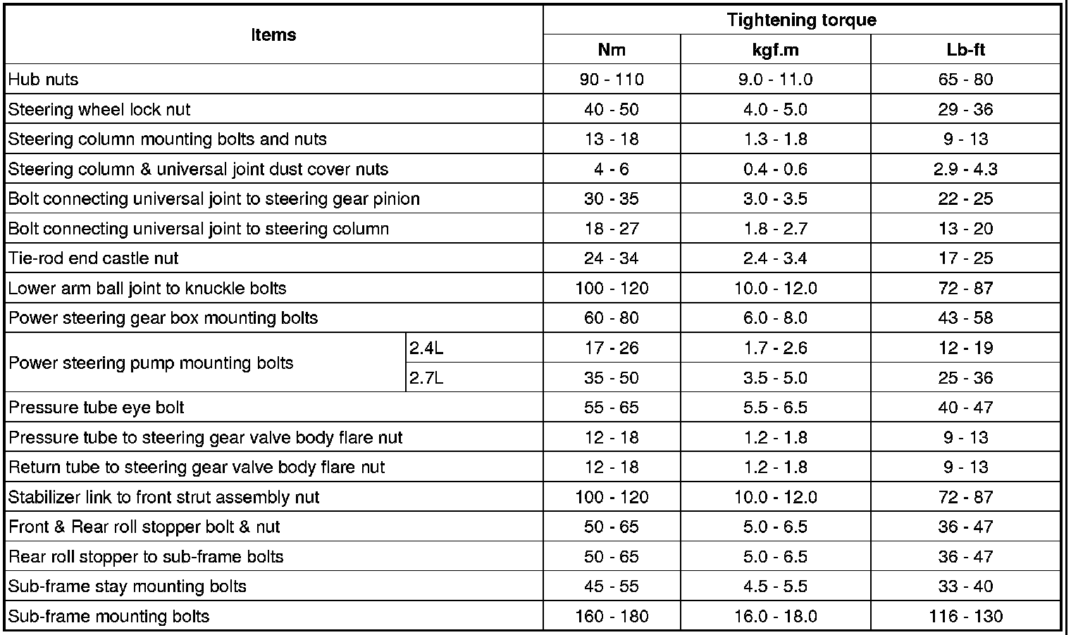 TIGHTENING TORQUE