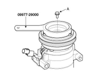 1. Remove the center bolt (A) while holding the disc & hub assembly with a commercially available disc & hub assembly bolt remover; Special tool number 09977-29000.
