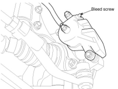 3. Loosen the right-rear brake bleed screw to allow air to escape from the system. Then tighten the bleed screw securely.