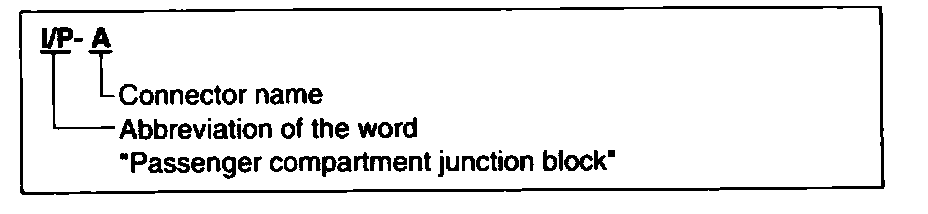 A junction block identification symbol consists of a wiring harness location classification symbol corresponding to a wiring harness location and number corresponding to the connector in the junction block.