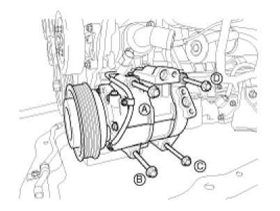 1. Make sure of the length of compressor mounting bolts, and then tighten it A->B->C->D order.