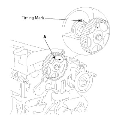 If the timing belt is reused, make an arrow indicating the turning direction to make sure that the belt is reinstalled in the same direction as before.