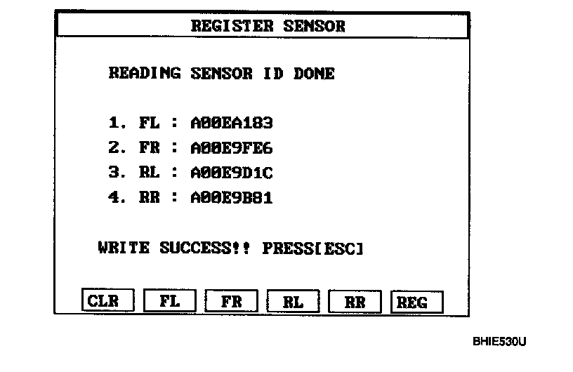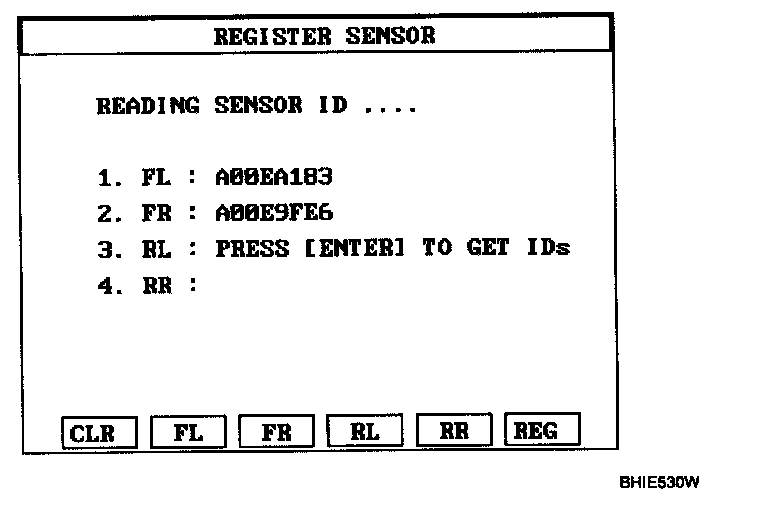 2. Read the four sensor's ids starting with sensor 1 (1 normally front left, 2 front right, 3 rear left, 4 rear right).