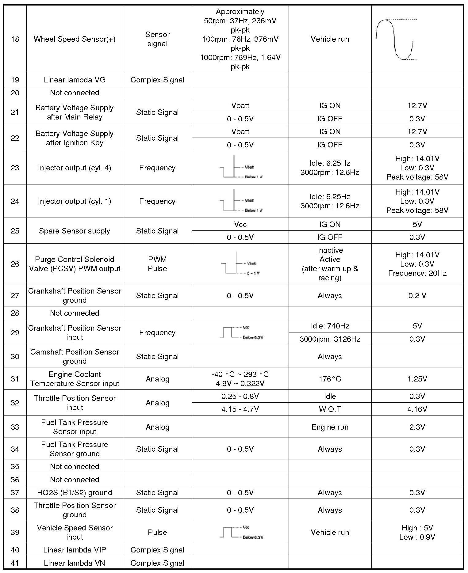 ECM TERMINAL INPUT/OUTPUT SIGNAL