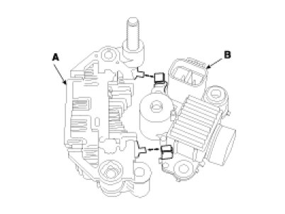 2. Unsolder the 4 stator leads (A) to the main diodes on the rectifier (B).