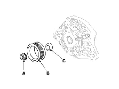 7. Disconnect the stator (A), rotor (B) and front bracket (C).