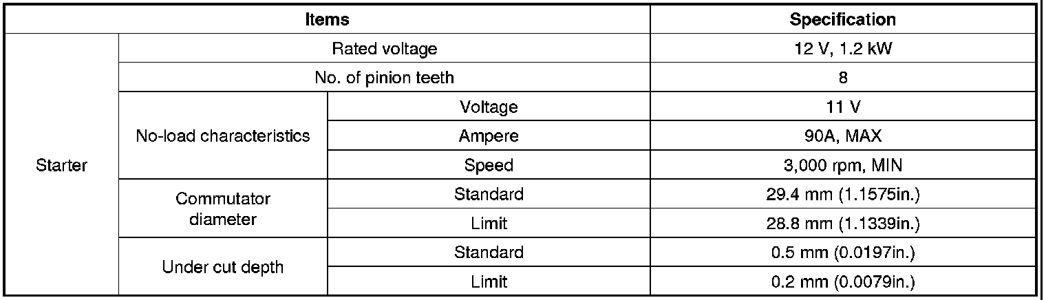 Starting System: Specifications