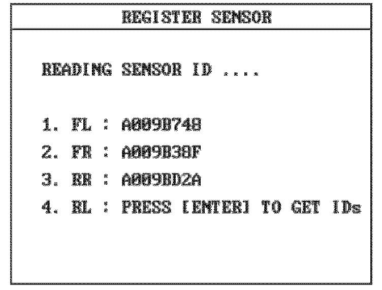 WHEEL SENSOR ID SCREEN: