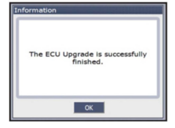 Upgrade will occur after 100% is reached on the bar graph. turn the ignition key OFF for 10 seconds, place it back in the ON position and then click OK to continue according to information displayed on the screen.