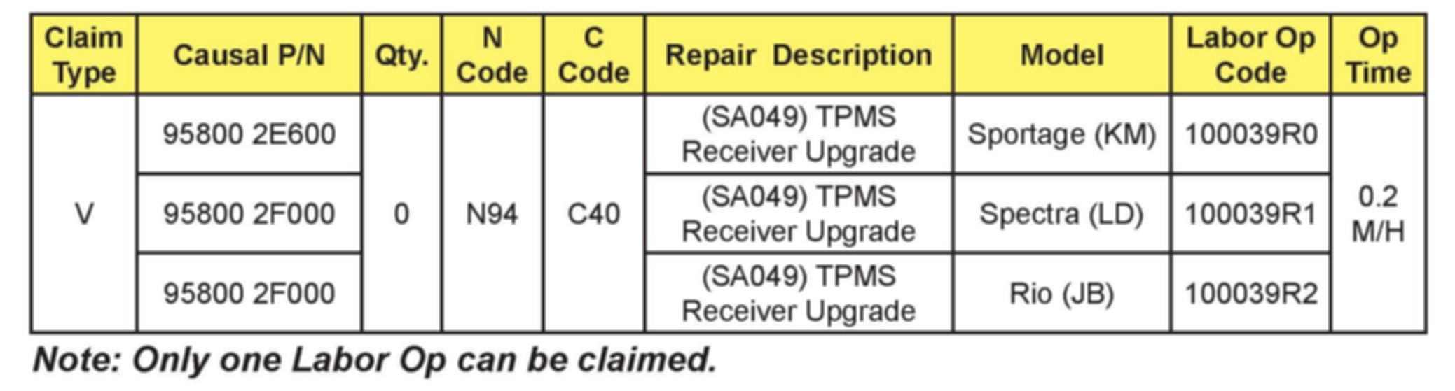 VIN inquiry data for this repair is provided for tracking purposes only. Kia retailers should reference SA049 when accessing the WebDCS system.