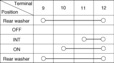 With the multi function switch in each position, make sure that continuity exists between the terminals below. If continuity is not as specified, replace the multi-function switch.