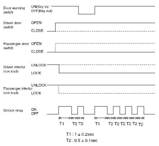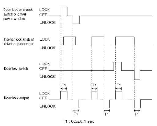 5. If the driver side or passenger side door is locked within 0.5 second after driver side or passenger side door is closed, it outputs unlock command for 1 second.