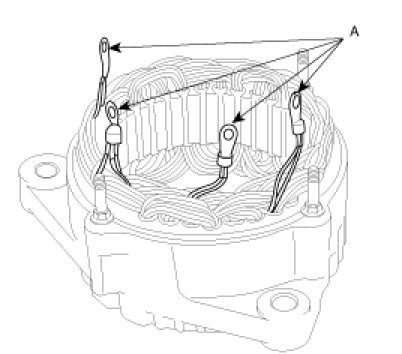1. Check that there is continuity between the slip rings(A). If there is no continuity, replace the generator.