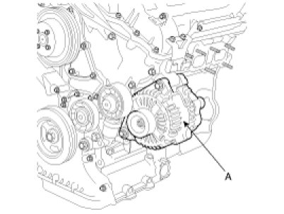 4. Pull out the through bolt and then remove the alternator(A).