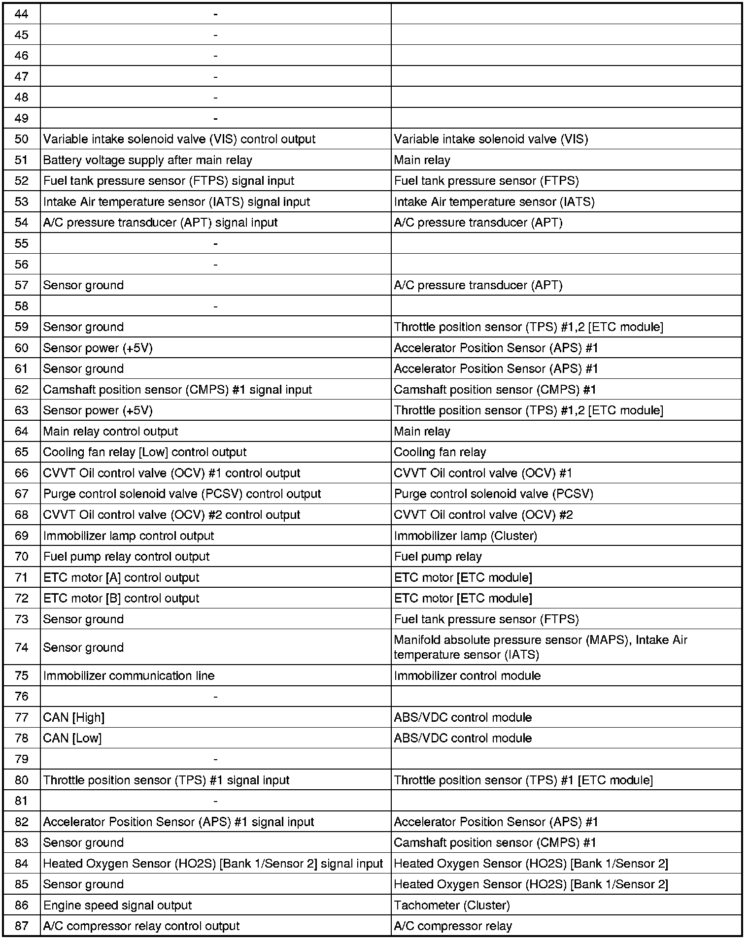 2. PCM terminal function