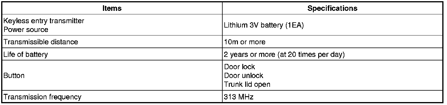 Keyless Entry Transmitter: Specifications