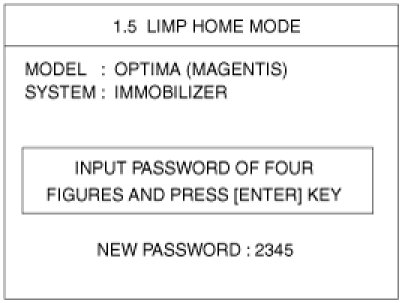 If the PCM(ECM) detects the fault of the SMARTRA or transponder, the PCM(ECM) will allow limp home function of the immobilizer. Limp home is only possible if the user password (4 digits) has been given to the PCM(ECM) before. This password can be selected by the vehicle owner and is programmed at the service station.