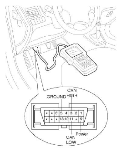 2. Connector the Diagnostic tool to the 16P data link connector located the driver's side kick panel.