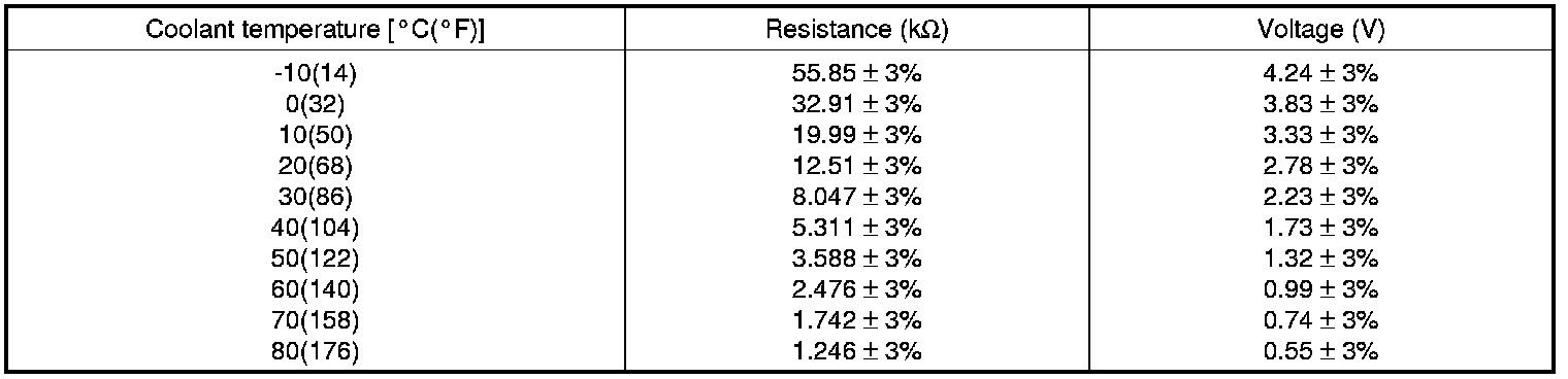 3. If the measured resistance is not specification, substitute with a known-good water temperature sensor and check for proper operation.