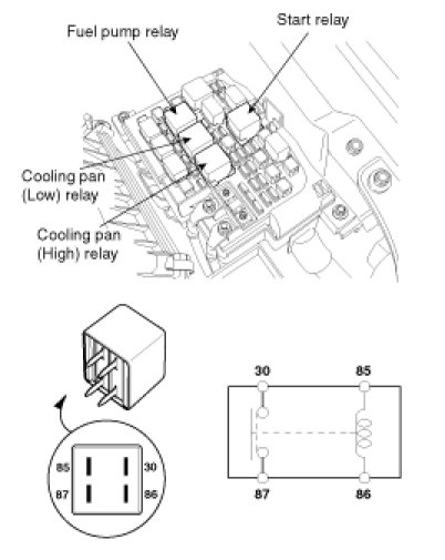 1. There should be continuity between the No.30 and No.87 terminals when power and ground are connected to the No.85 and No.86 terminals.
