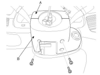 10. Loosen the screws, and then remove the steering column upper (A) and lower shrouds (B).