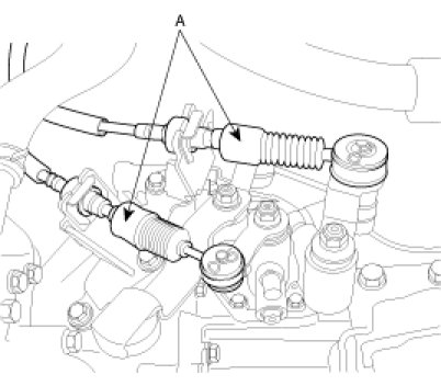 7. Remove the select and shift cable assembly(A) from the transaxle.