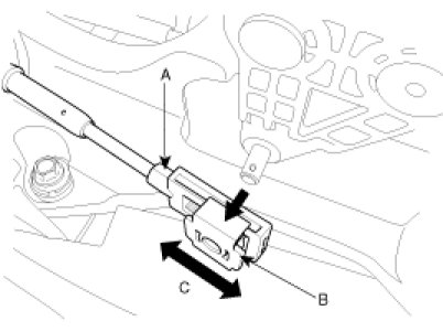 7. Adjust the slide clip (B) to fit it into the select lever pin (A) and install the snap pin (C).
