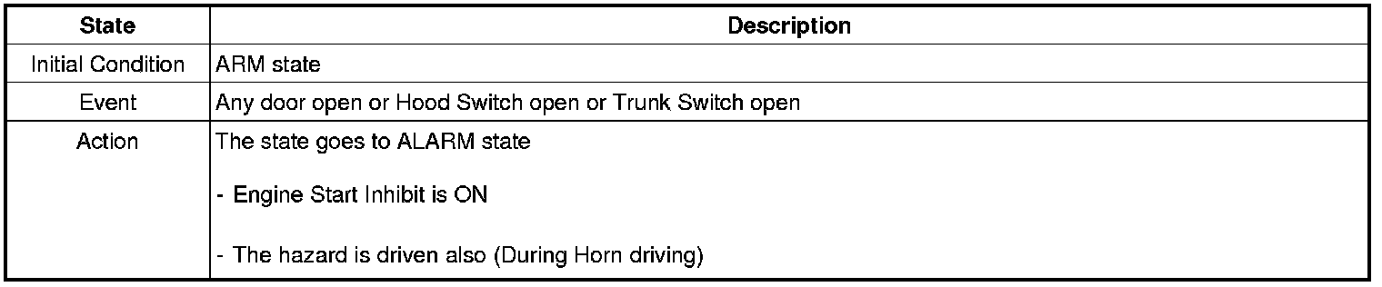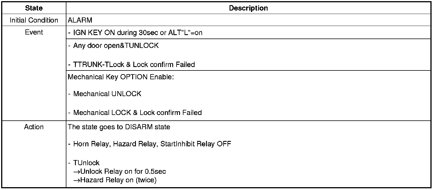 (3) PANIC alarm is turned ON with continuing antitheft function when PANIC signal is received in ARM stand-by / ARM / Alarm end / RELOCK stand-by mode.