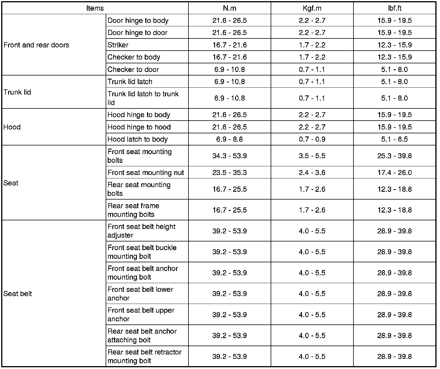 TIGHTENING TORQUE
