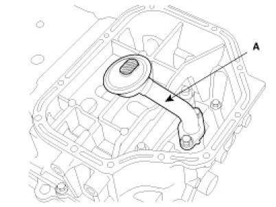 8. Using SST(09215-3C000), remove the lower oil pan(A).