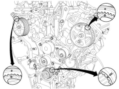 3. Ensure the timing marks on the camshaft and the crankshaft sprockets.