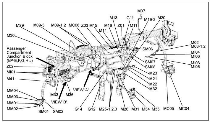 A junction block identification symbol consists of a wiring harness location classification symbol corresponding to a wiring harness location and number corresponding to the connector in the junction block.
