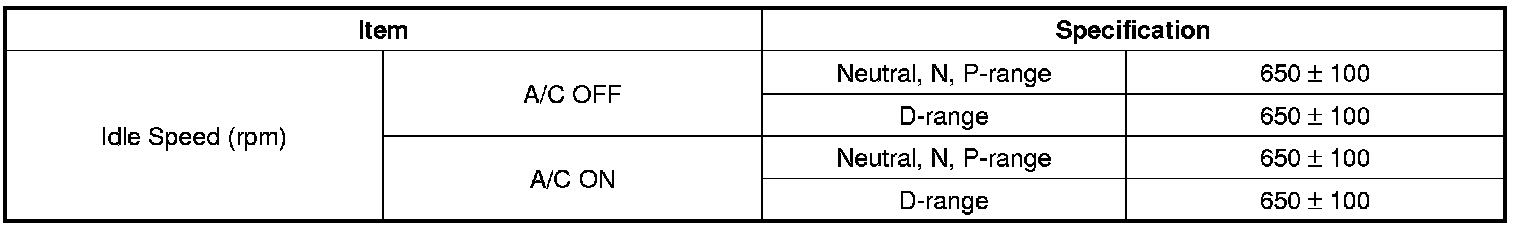 Idle Speed: Specifications