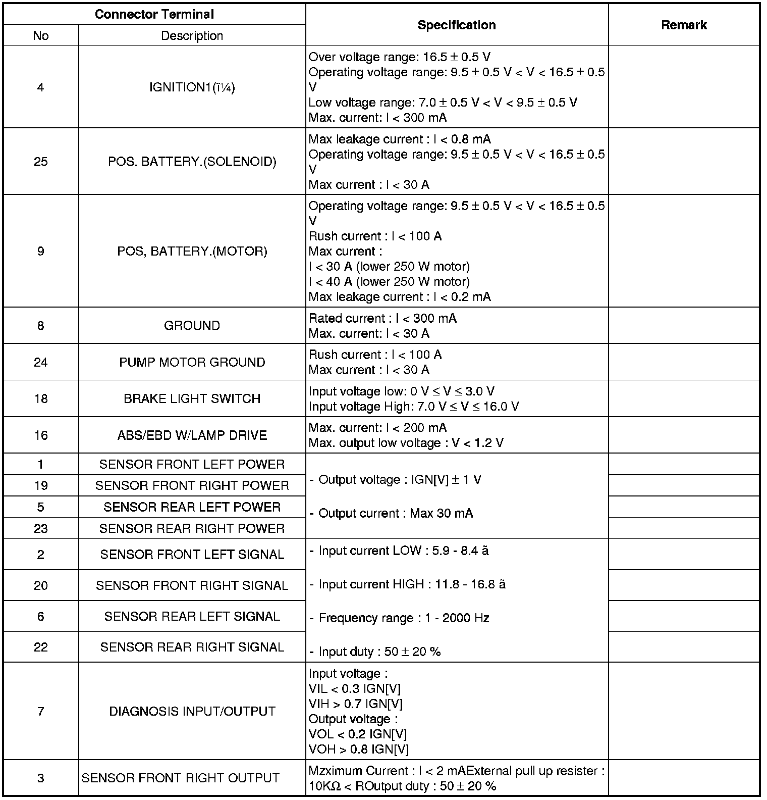 ABS CONNECTOR INPUT/OUTPUT