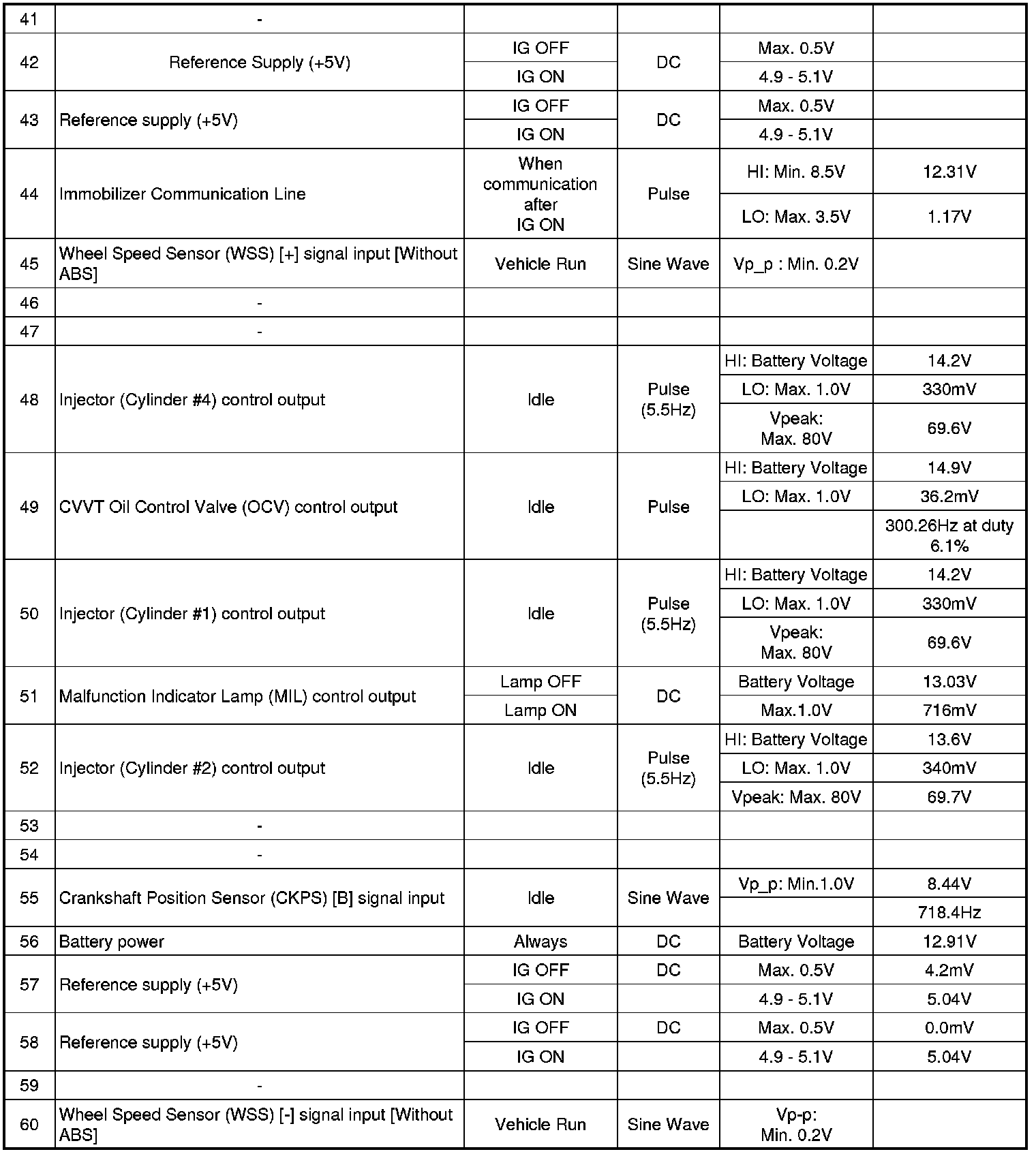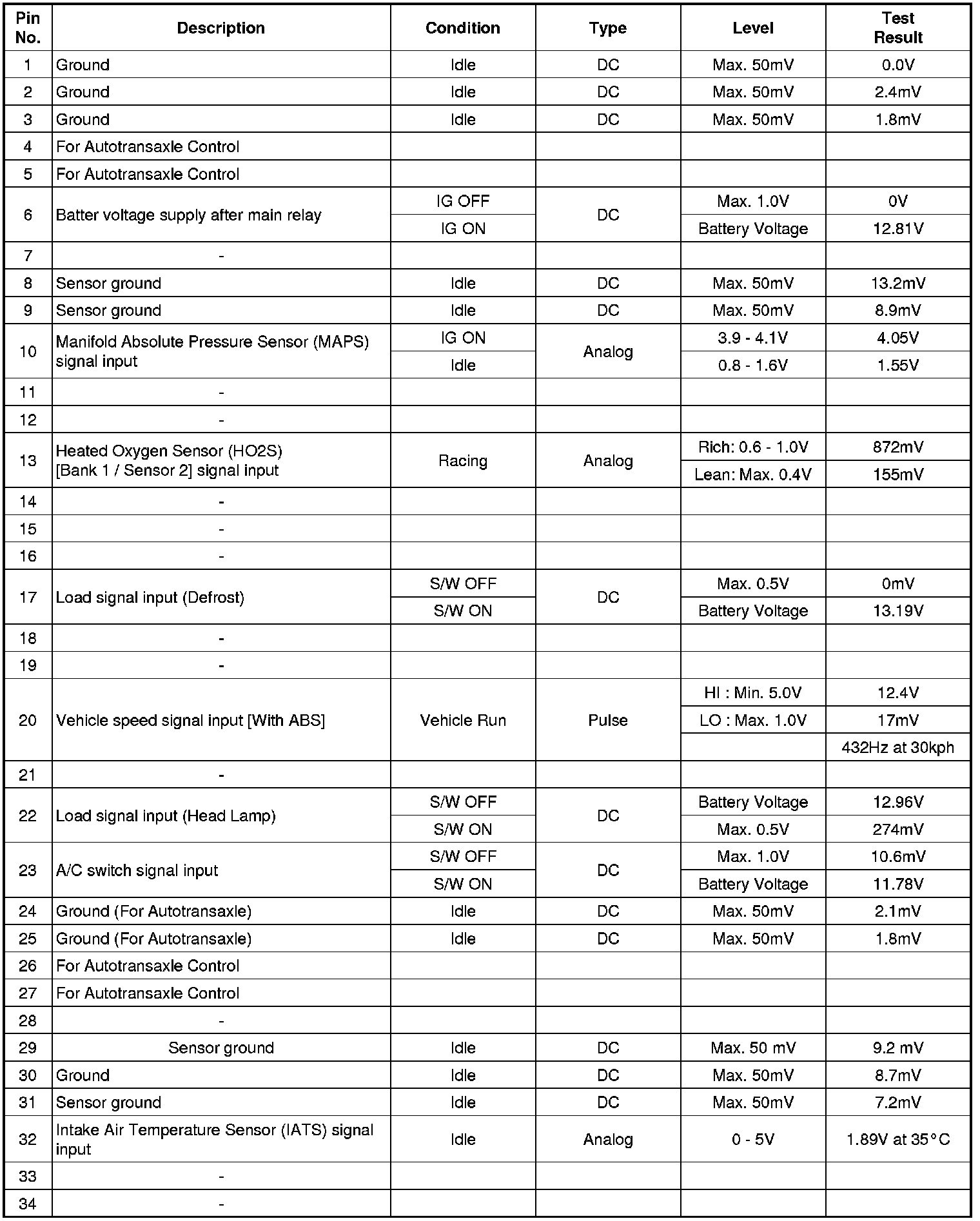 3. PCM TERMINAL IN/OUT SIGNAL (A/T)