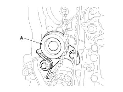 5. Install the idler pulley(A) and tighten the bolt(B) to the specified torque.