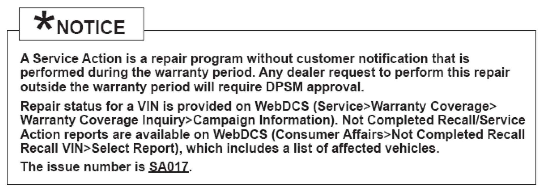 verification prior to replacement. Refer to labor operations codes on page 3 for warranty claim information.