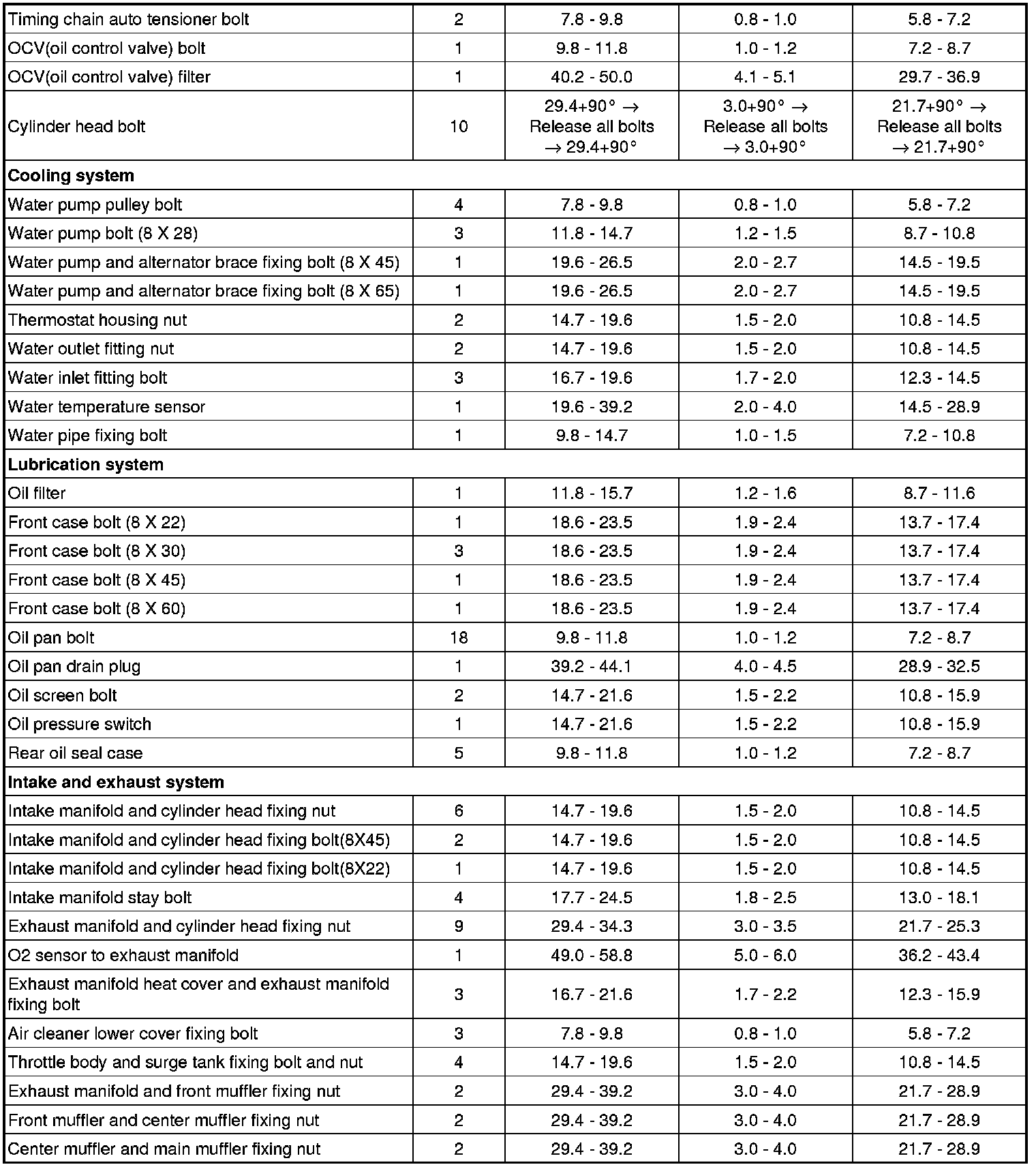 TIGHTENING TORQUES