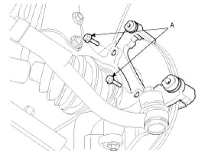 2. Install the caliper bracket (B) and tighten the caliper mounting bolts (A).