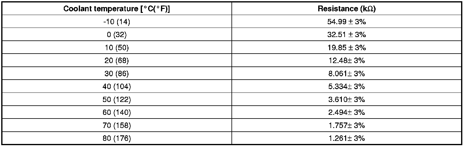 3. If the measured resistance is not specification, substitute with a known-good water temperature sensor and check for proper operation.