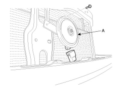 2. Remove the bolt and disconnect the horn connector, then remove the and low pitch horn (A).
