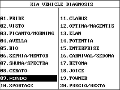 2. Select option "BODY CONTROL MODULE" and press ENTER.