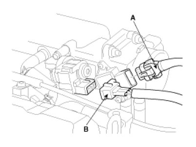 2. Disconnect the throttle position sensor(TPS) connector and the idle speed actuator(ISA) connector(B).