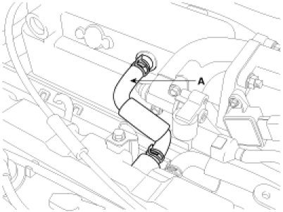 3. Disconnect the positive crankcase ventilation(PCV) hose(A) and the breather hose.